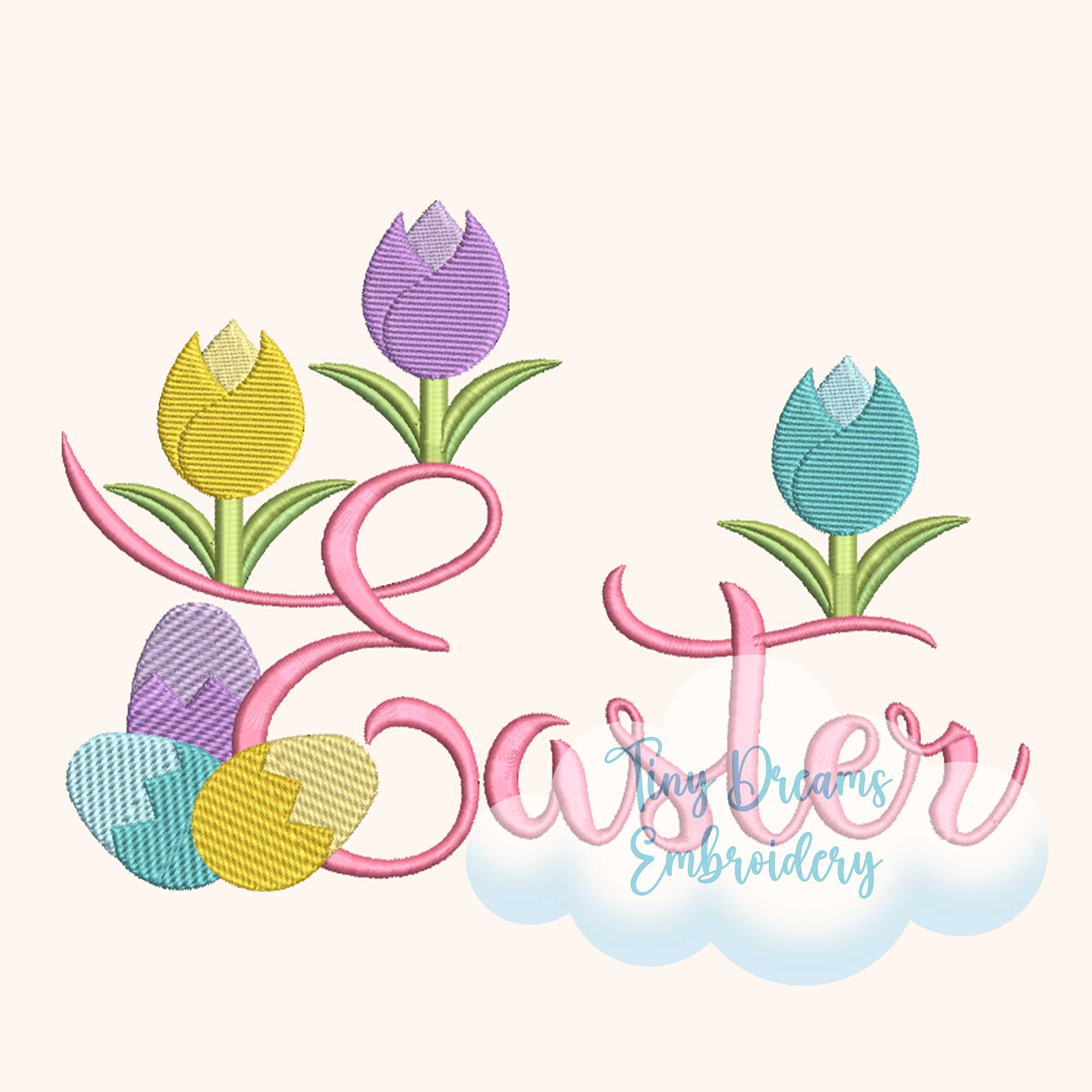 Easter Tulip Digital Machine Embroidery Design Floral Spring Design Embroidery Easter Egg Embroidery Design Happy Easter Embroidery Design