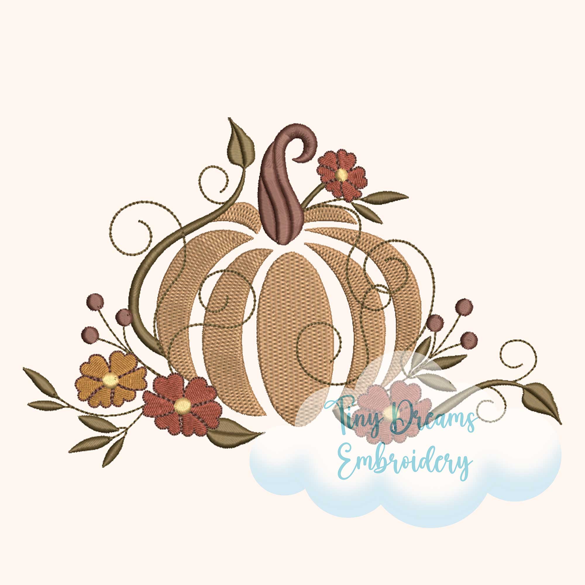 Fall Flowers Pumpkin Digital Machine Embroidery Design Fall Leaves Embroidery Design Floral Thanksgiving Embroidery Design Floral Pumpkin