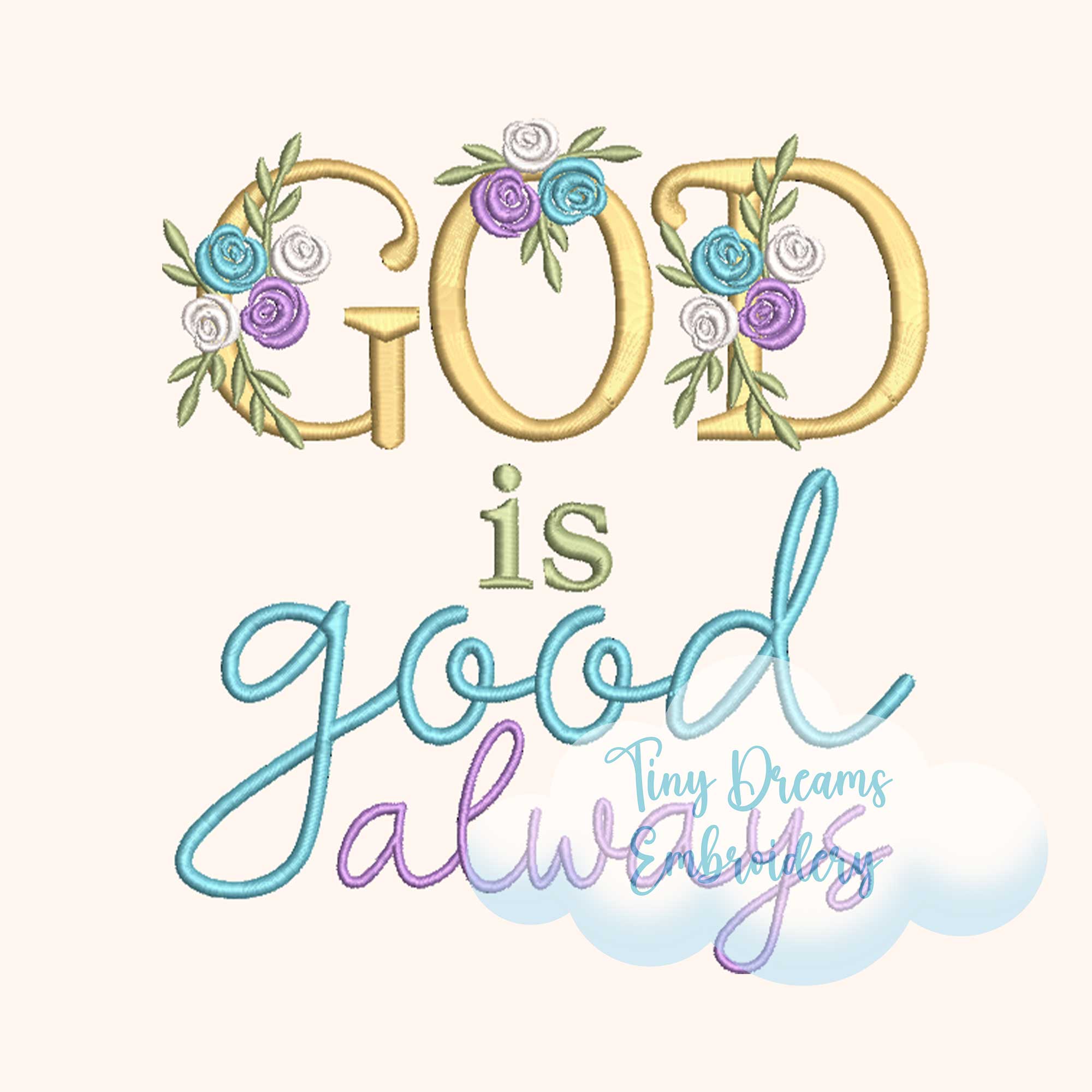 God Good Always Digital Machine Embroidery Design Rose Flower Design Embroidery Spring Floral Embriodery Design Religious Embroidery God