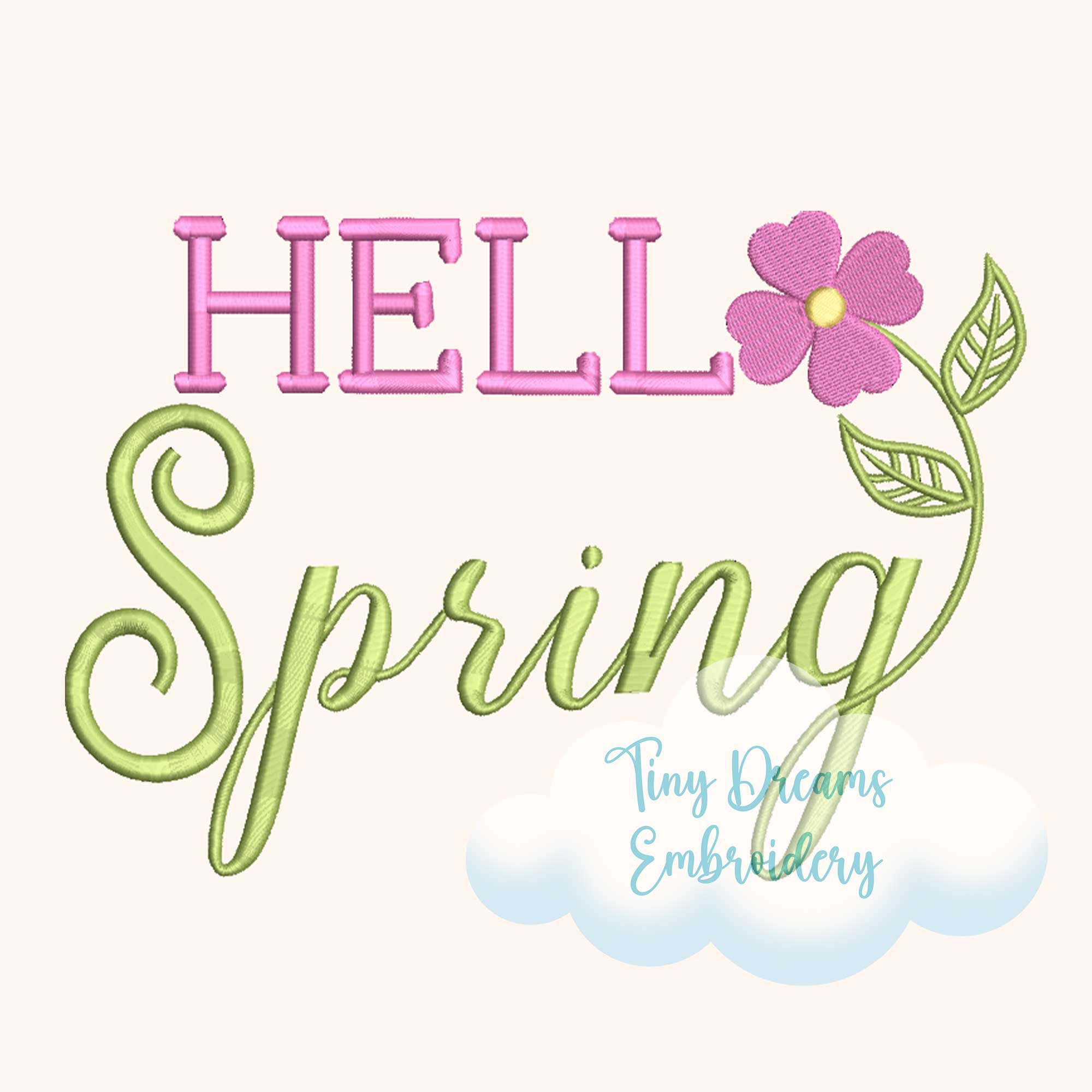Hello Spring Digital Machine Embroidery Design Spring Flower Embroidery Design Floral Embroidery Design Spring Lettering Embroidery Design