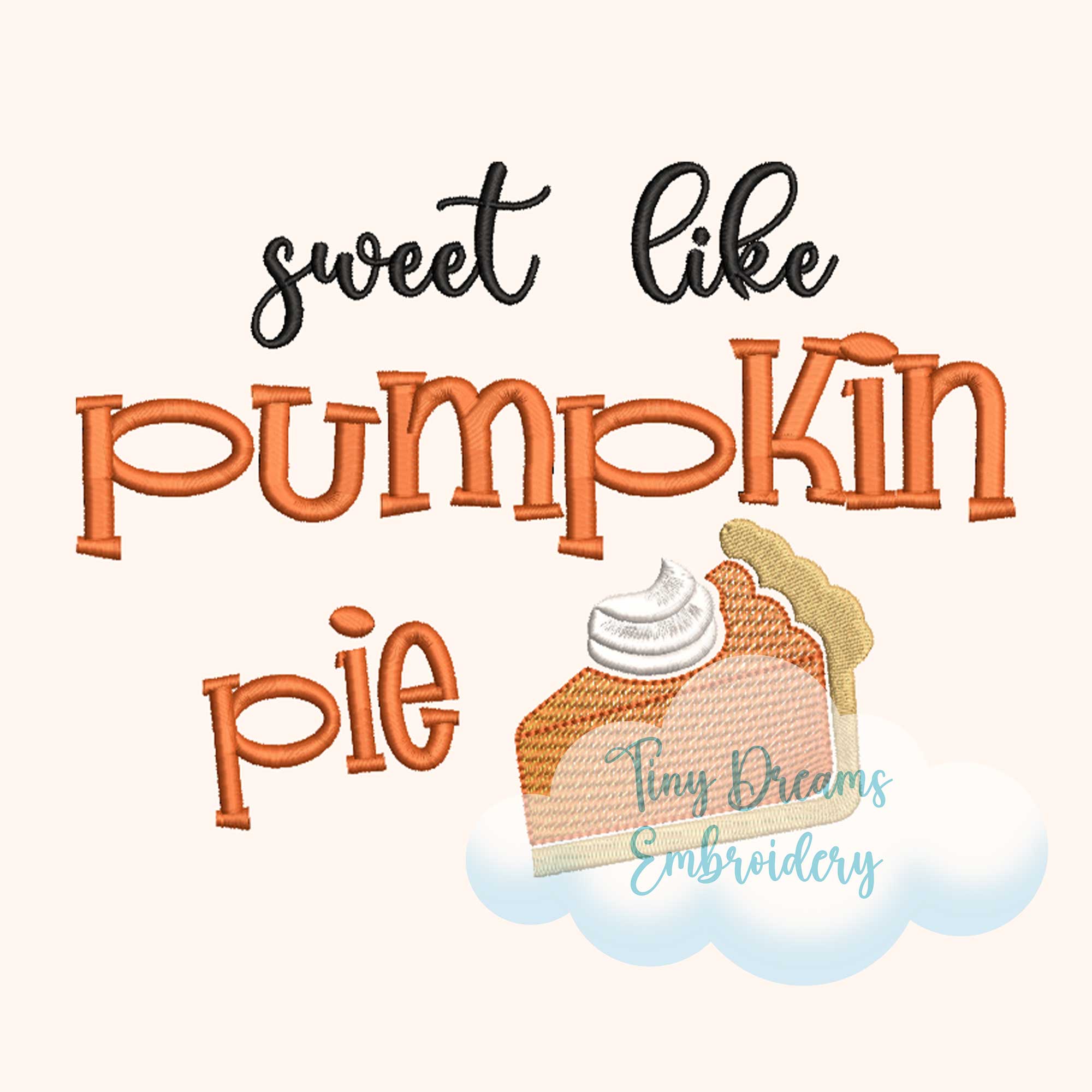 Pumpkin Pie Digital Machine Embroidery Design Thanksgiving Embroidery Design Sweet Embroidery Design Kitchen Pumpkin Pie Embroidery Design