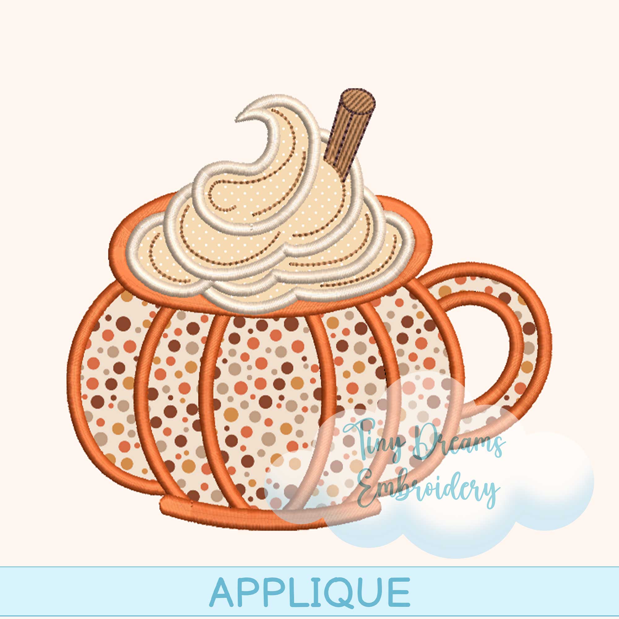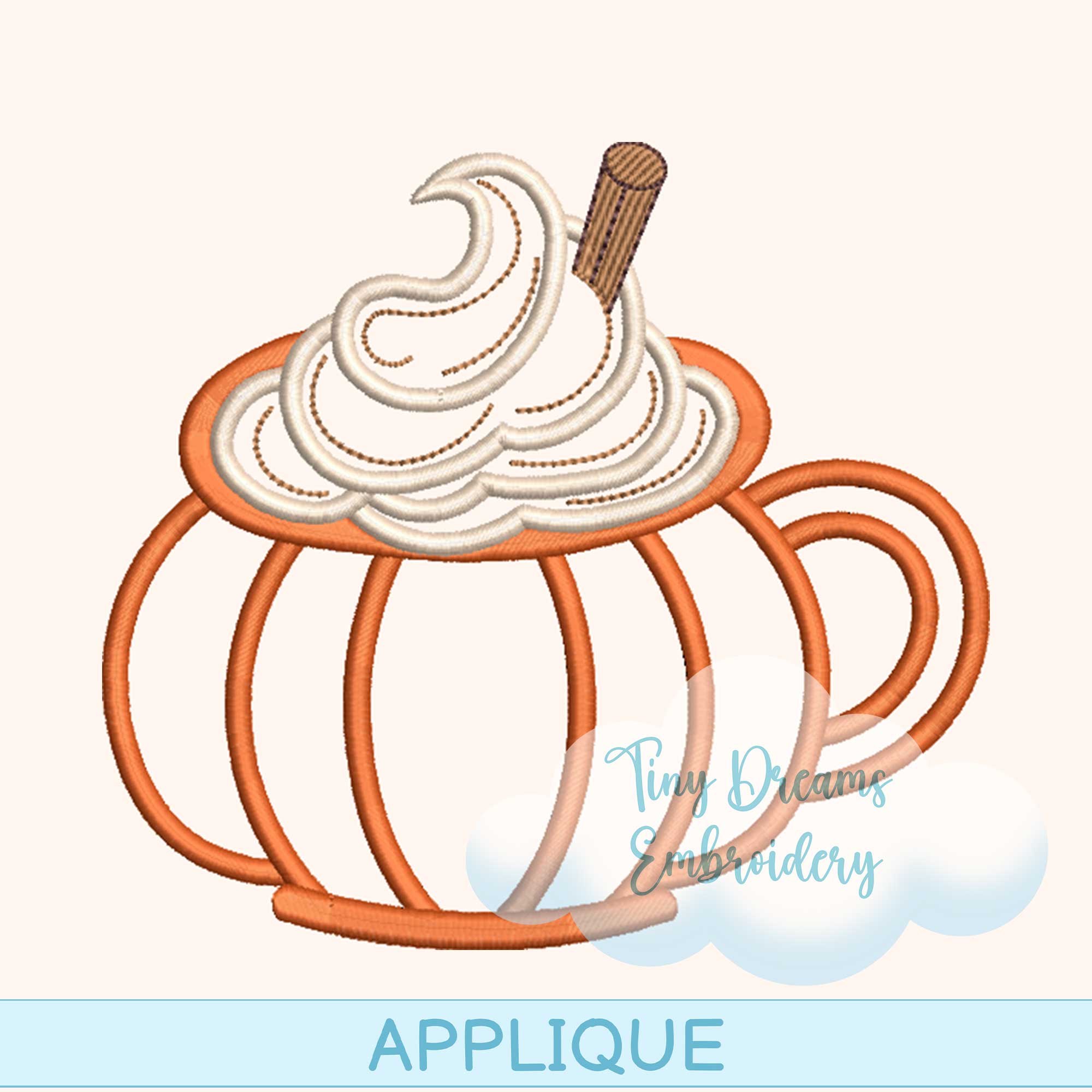 Pumpkin Spice Applique Digital Machine Embroidery Design Fall Latte Coffee Design Embroidery Cream Cinnamon Pumpkin Spice Embroidery Design