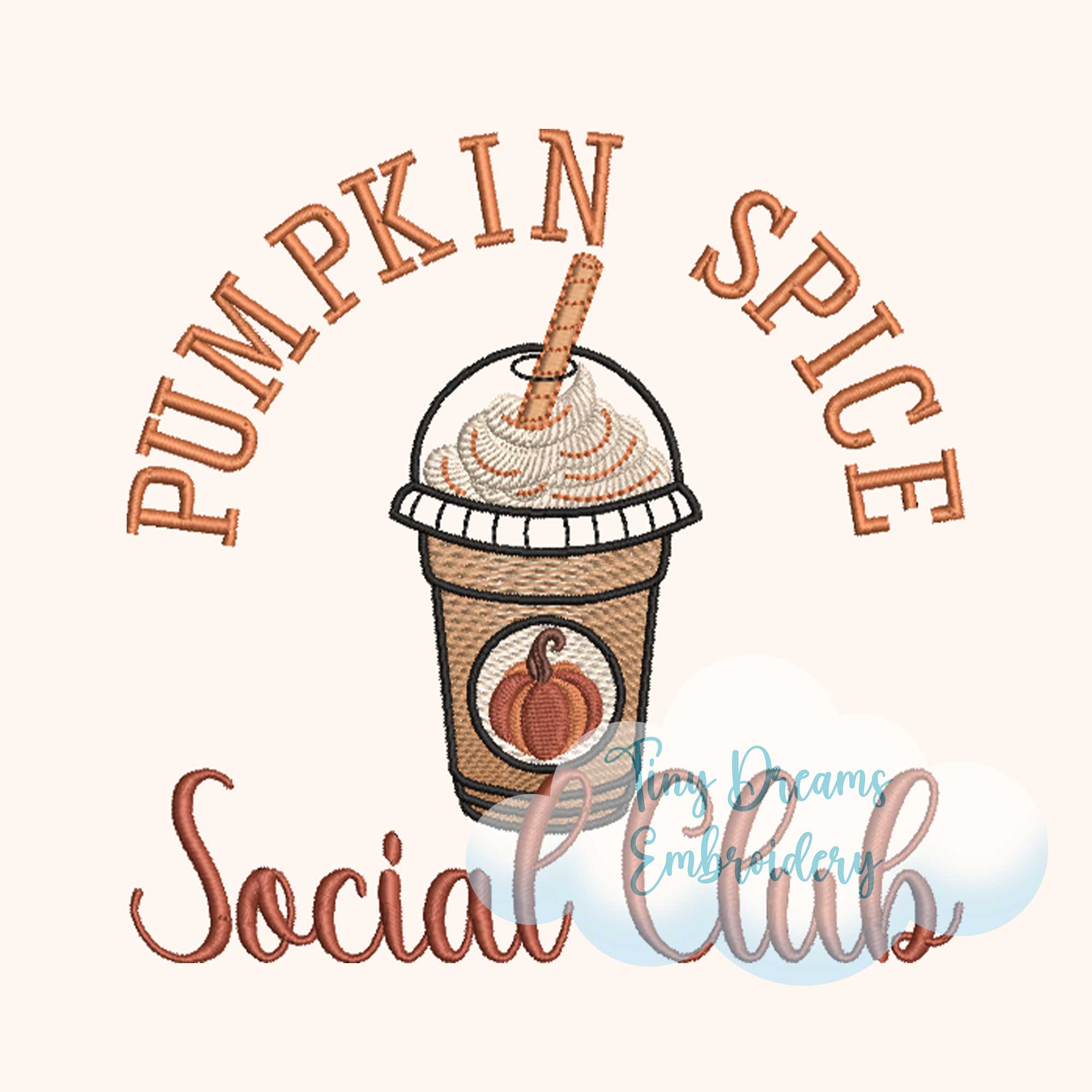 Pumpkin Spice Latte Digital Machine Embroidery Design Social Club Design Embroidery Fall Autumn Coffee Embroidery Design Pumpkin Fall Design