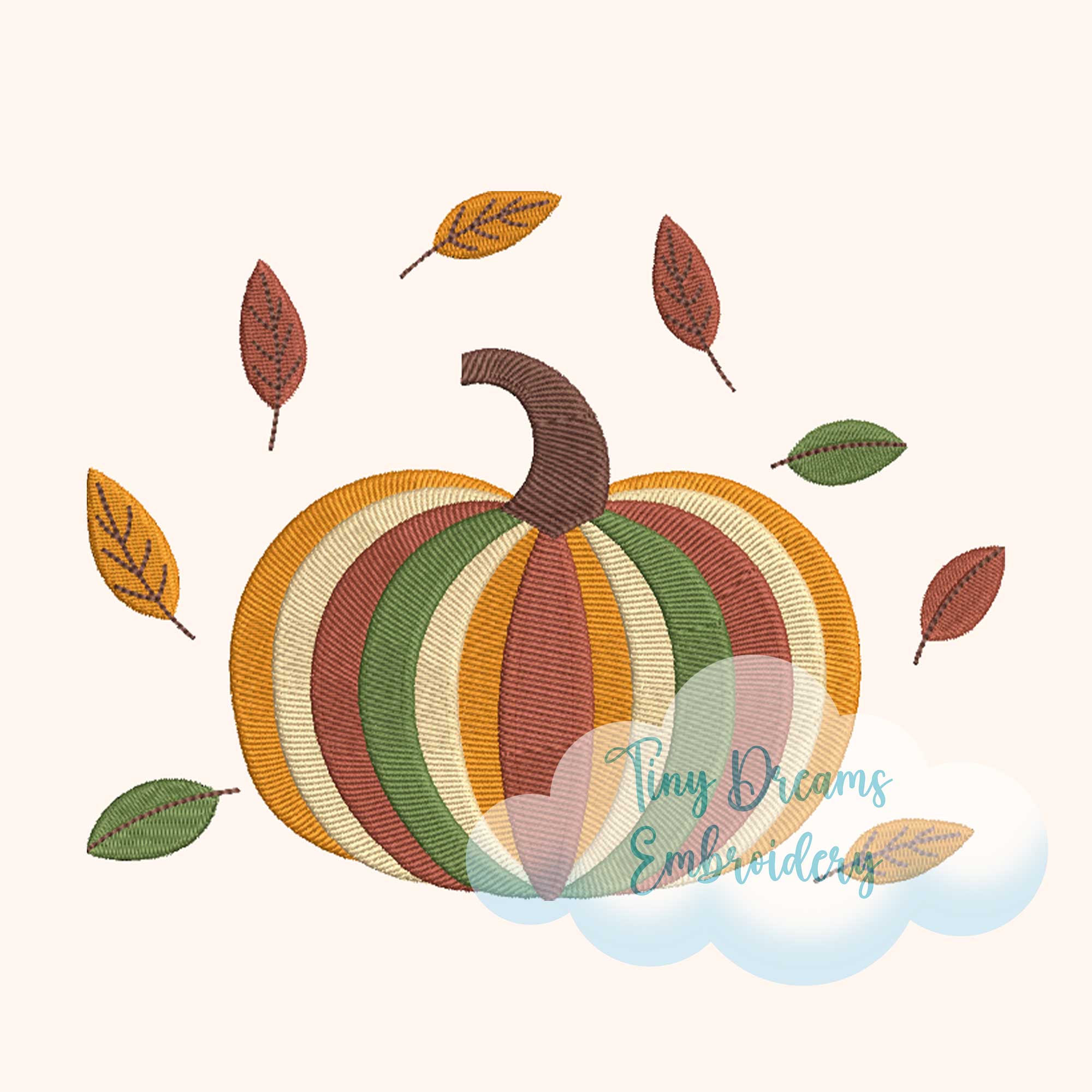 Pumpkin Fall Leaves Embroidery Design Autumn Season Thanksgiving Machine Embroidery (Digital Download)