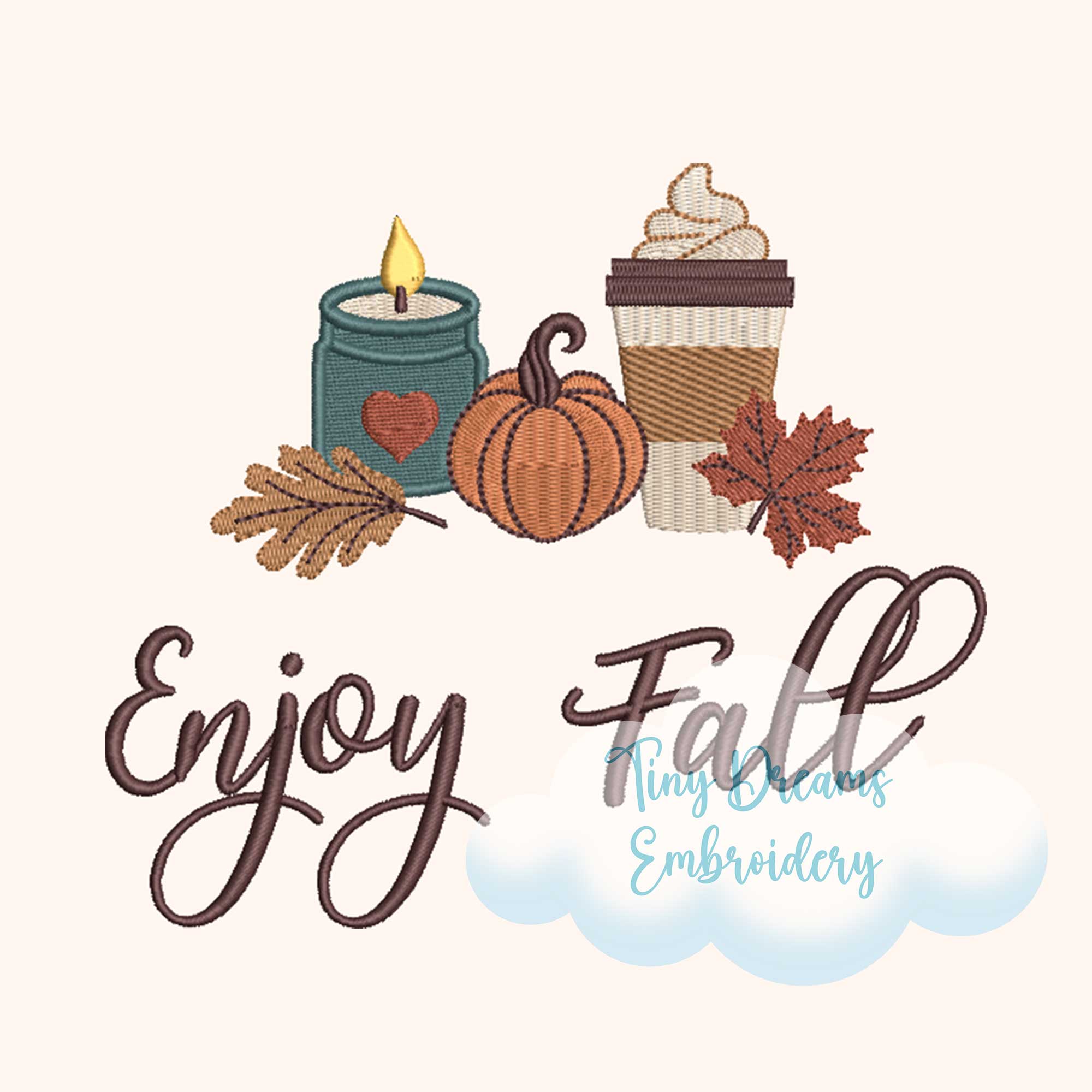Enjoy Fall Leaves Embroidery Design: Autumn Coffee, Cozy Candle (Digital Download)