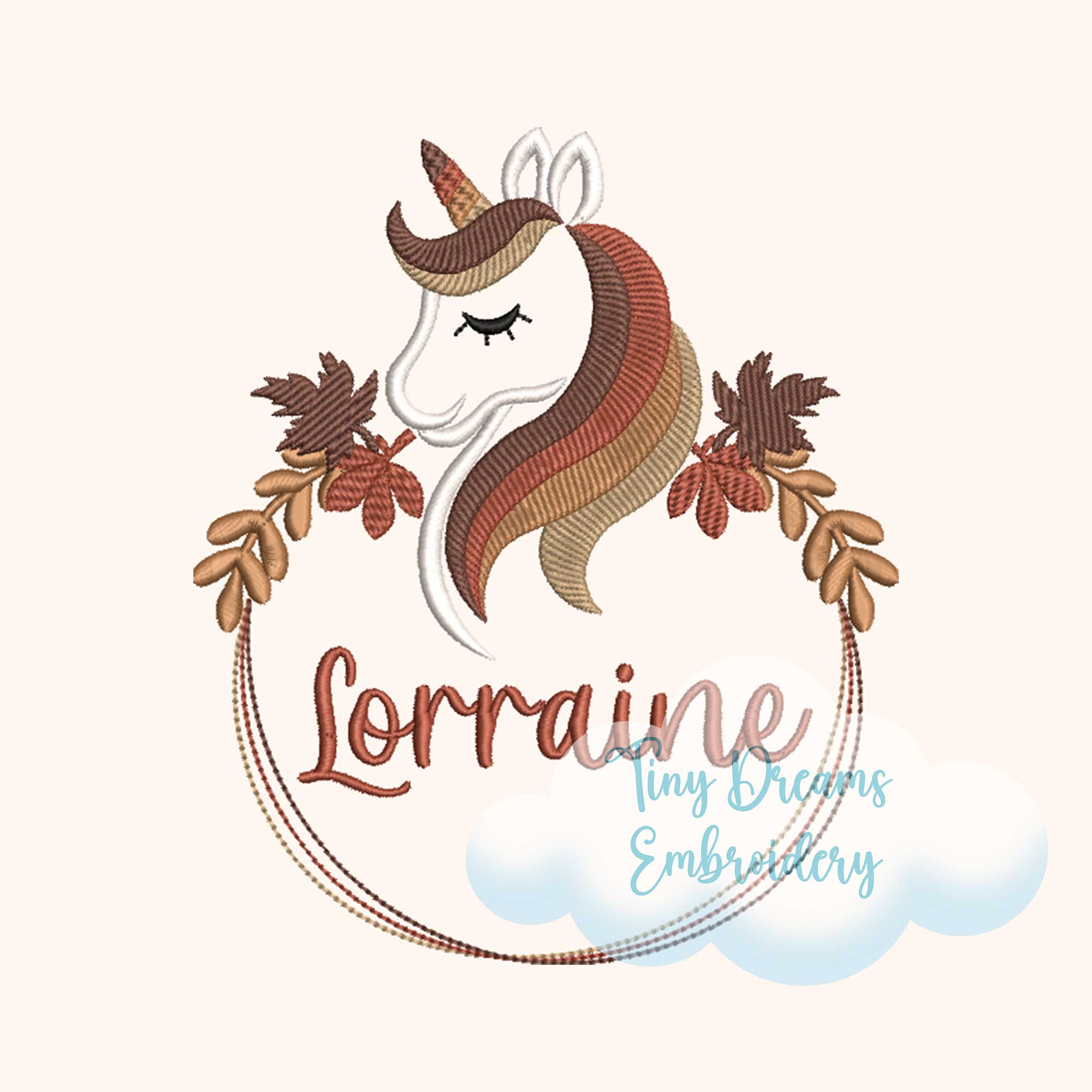 Cute Fall Unicorn Embroidery Design Baby Unicorn Custom Girl Name Autumn Leaves (Digital Download)