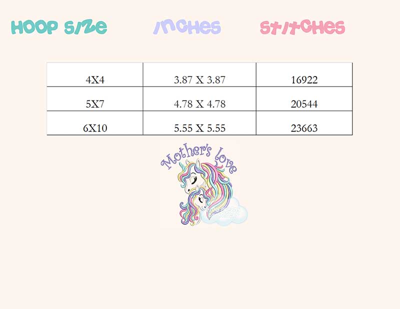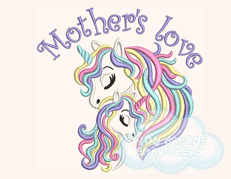 Mother’s love with Cute mom unicorn and baby unicorn embroidery design