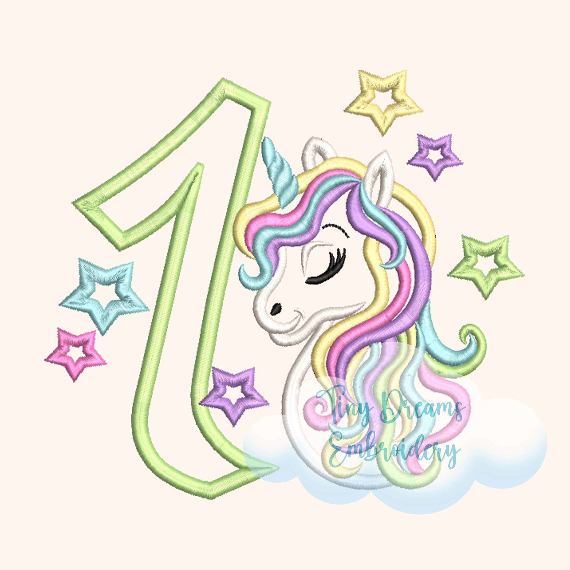 First Birthday Unicorn Applique Digital Machine Embroidery Design Baby First Embroidery Design Unicorn Girl Birthday Applique Embroidery