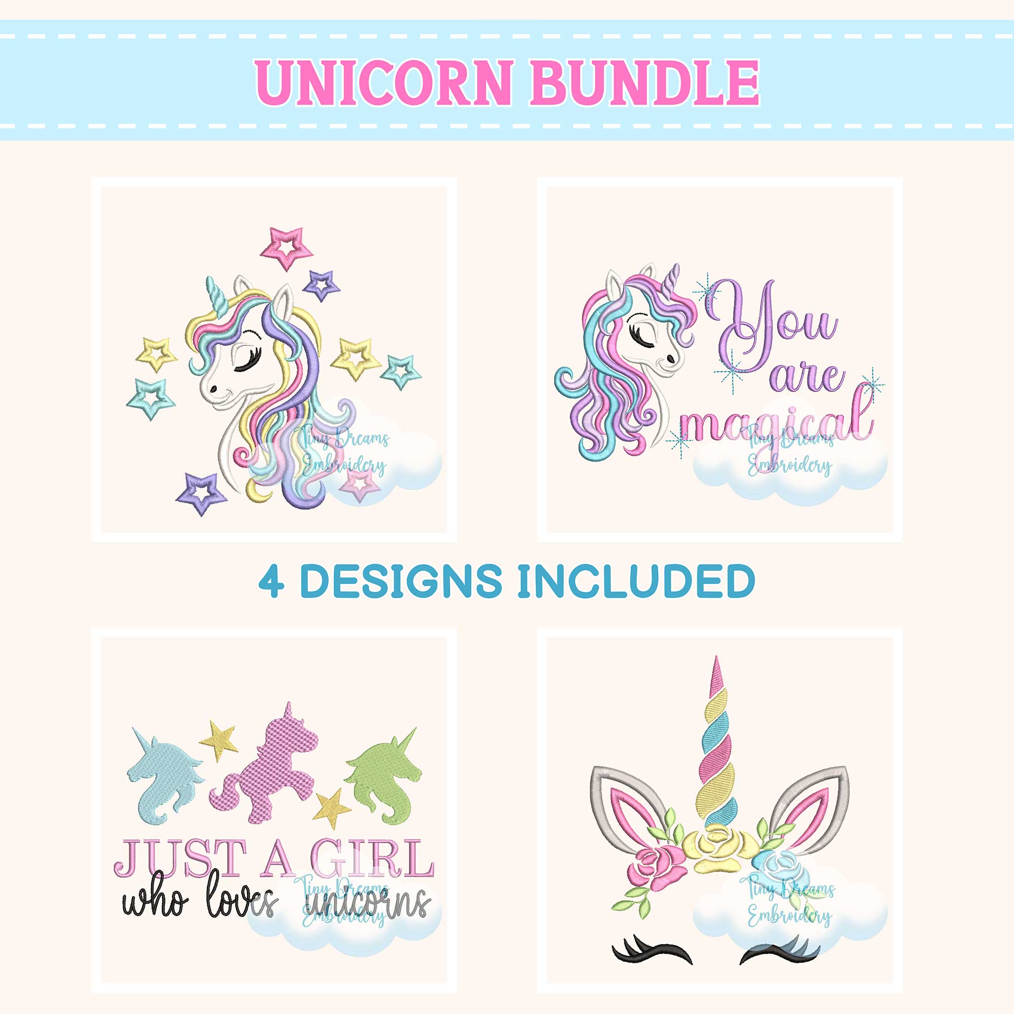 Unicorn 4 Designs Bundle Digital Machine Embroidery Design Magic Girl Design Embroidery Cute Unicorn Embroidery Machine Design Fantasy Baby