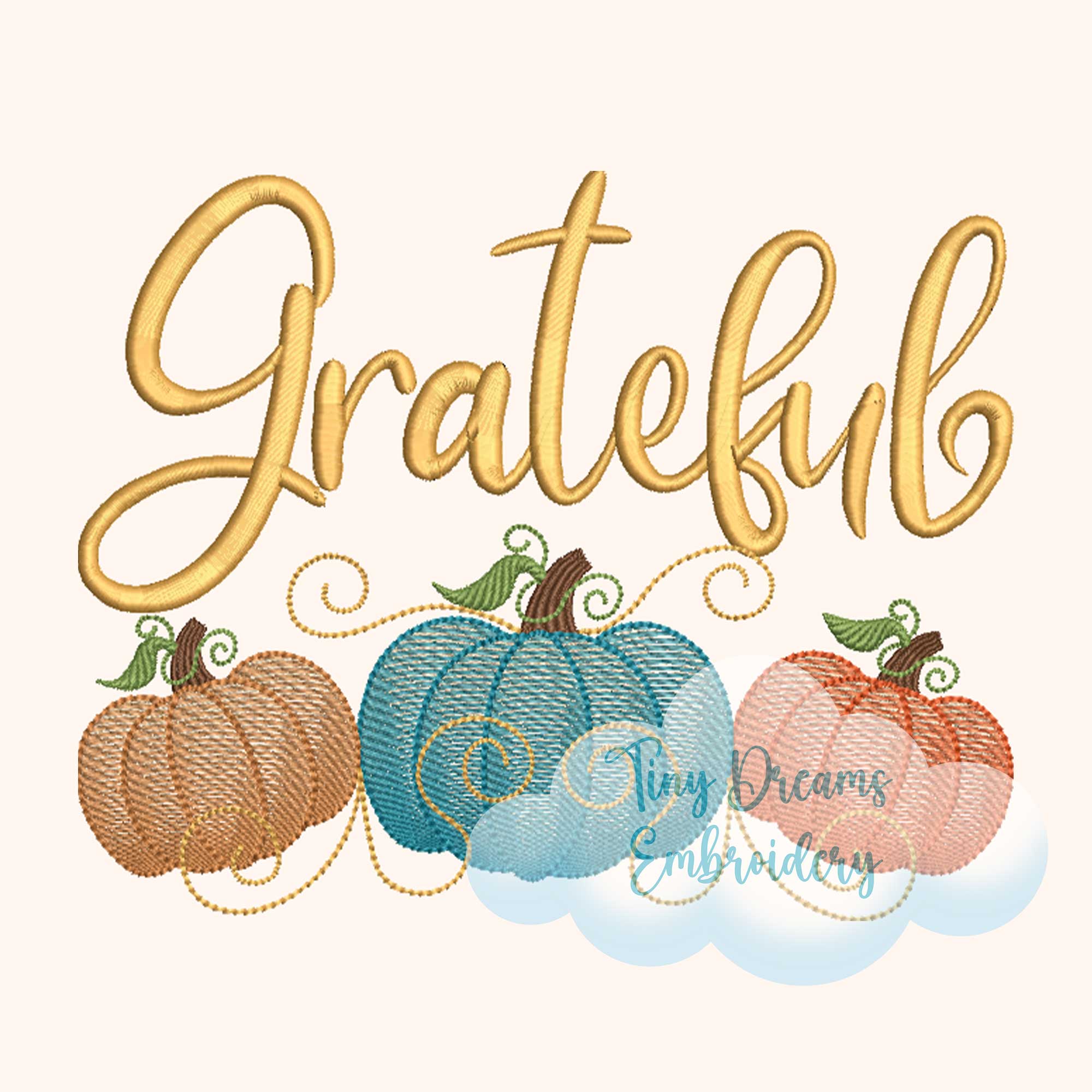 Grateful Digital Machine Embroidery Design Pumpkin Season Design Embroidery Fall Autumn Embroidery Design Thanksgiving Embroidery Thankful
