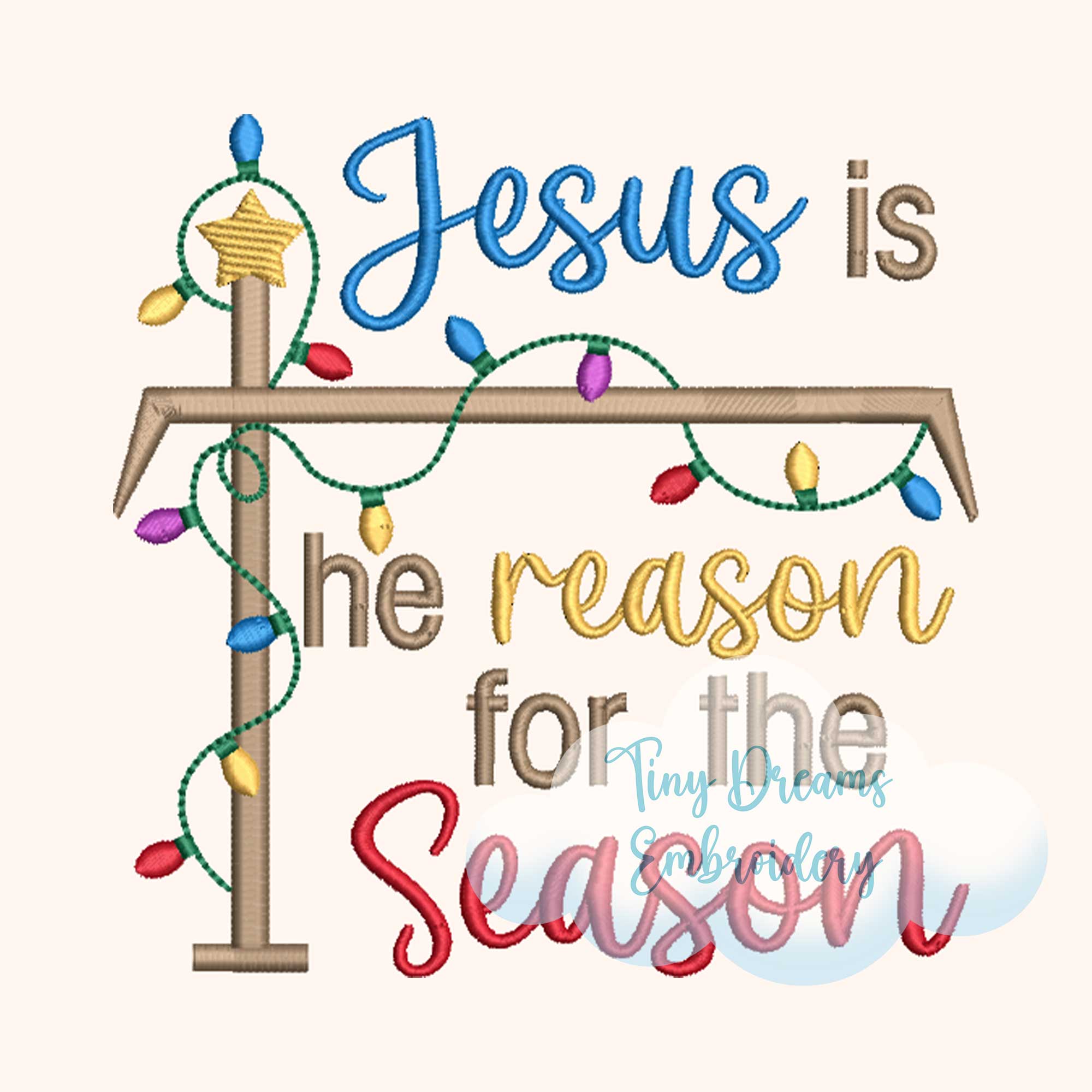 Jesus The Reason for Season Machine Embroidery Design: Christmas Lights Cross (Digital Download)