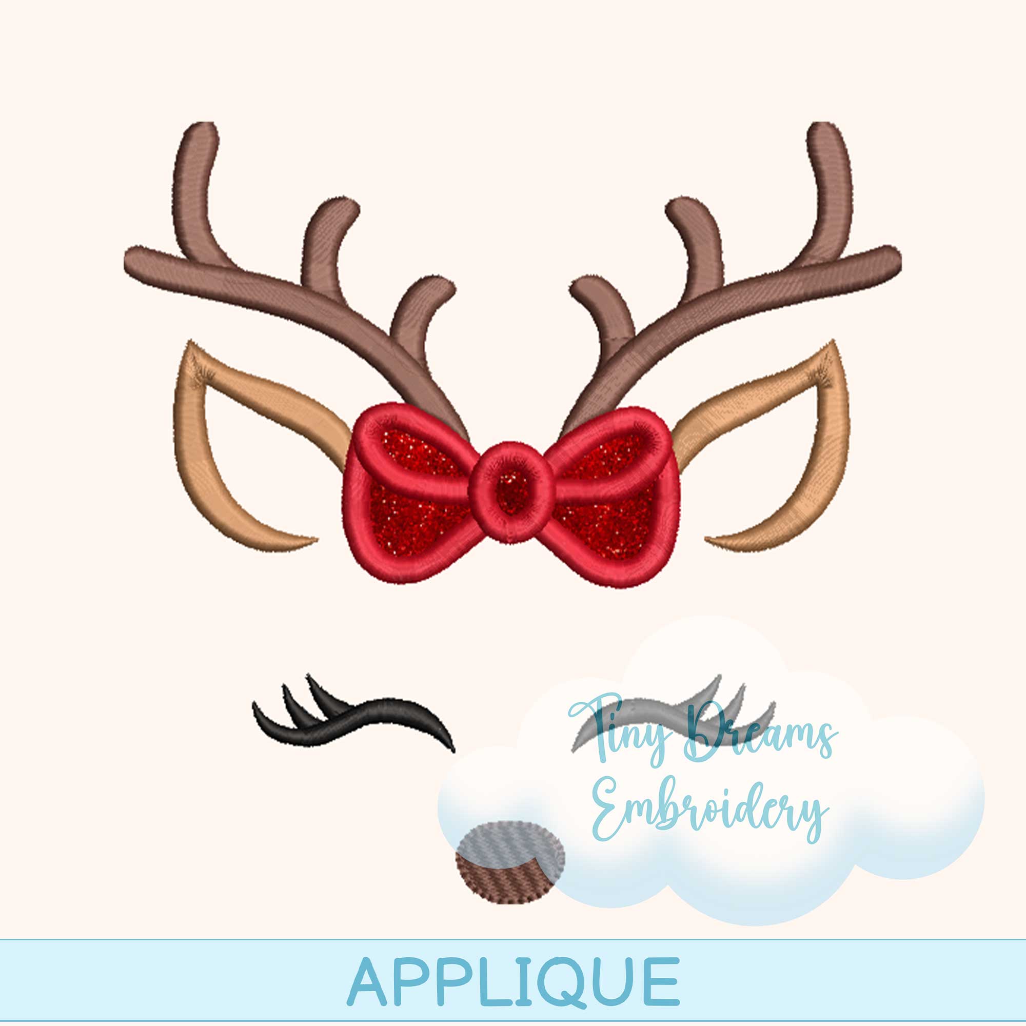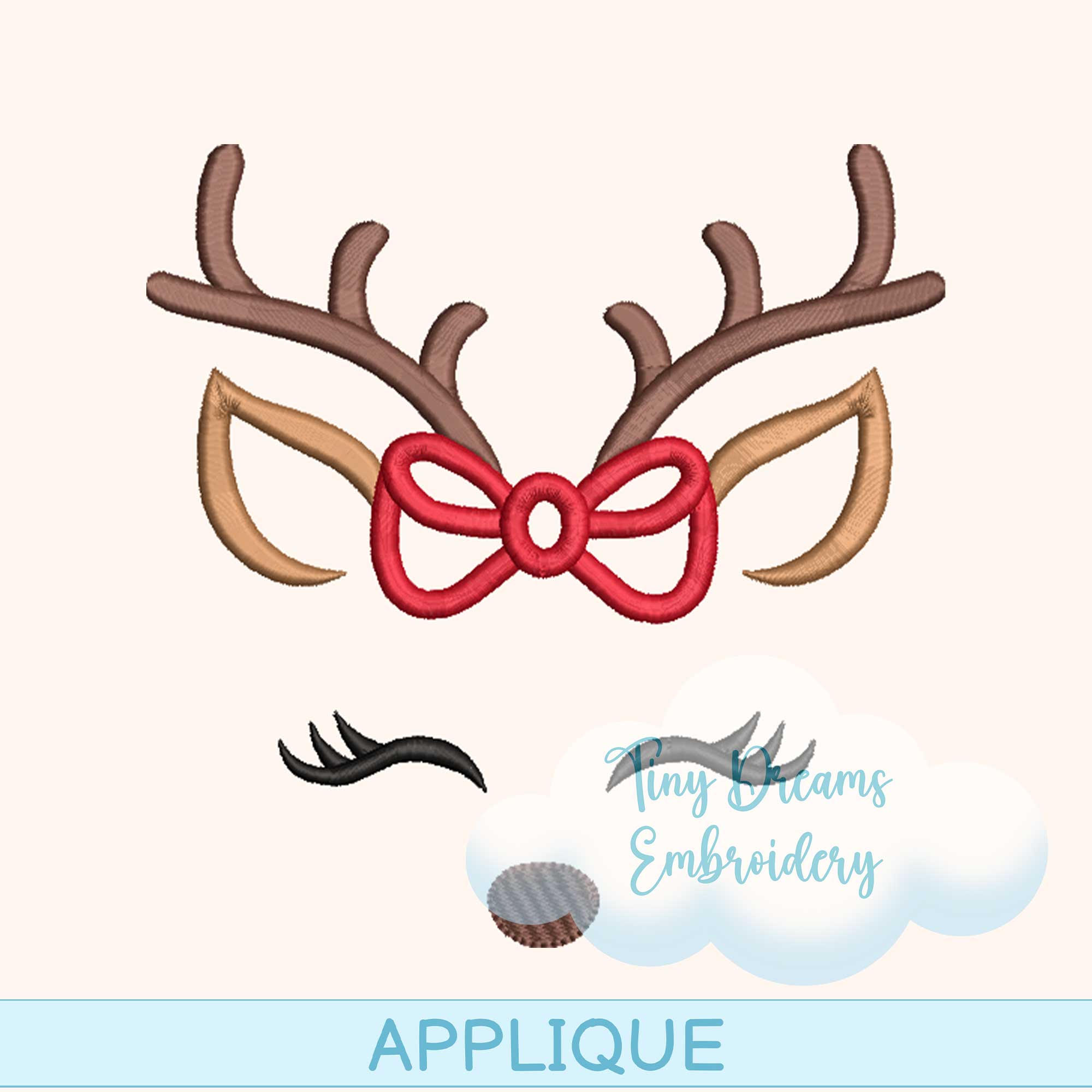 Reindeer Christmas Bow Applique: Girl Machine Embroidery Design (Digital Download)