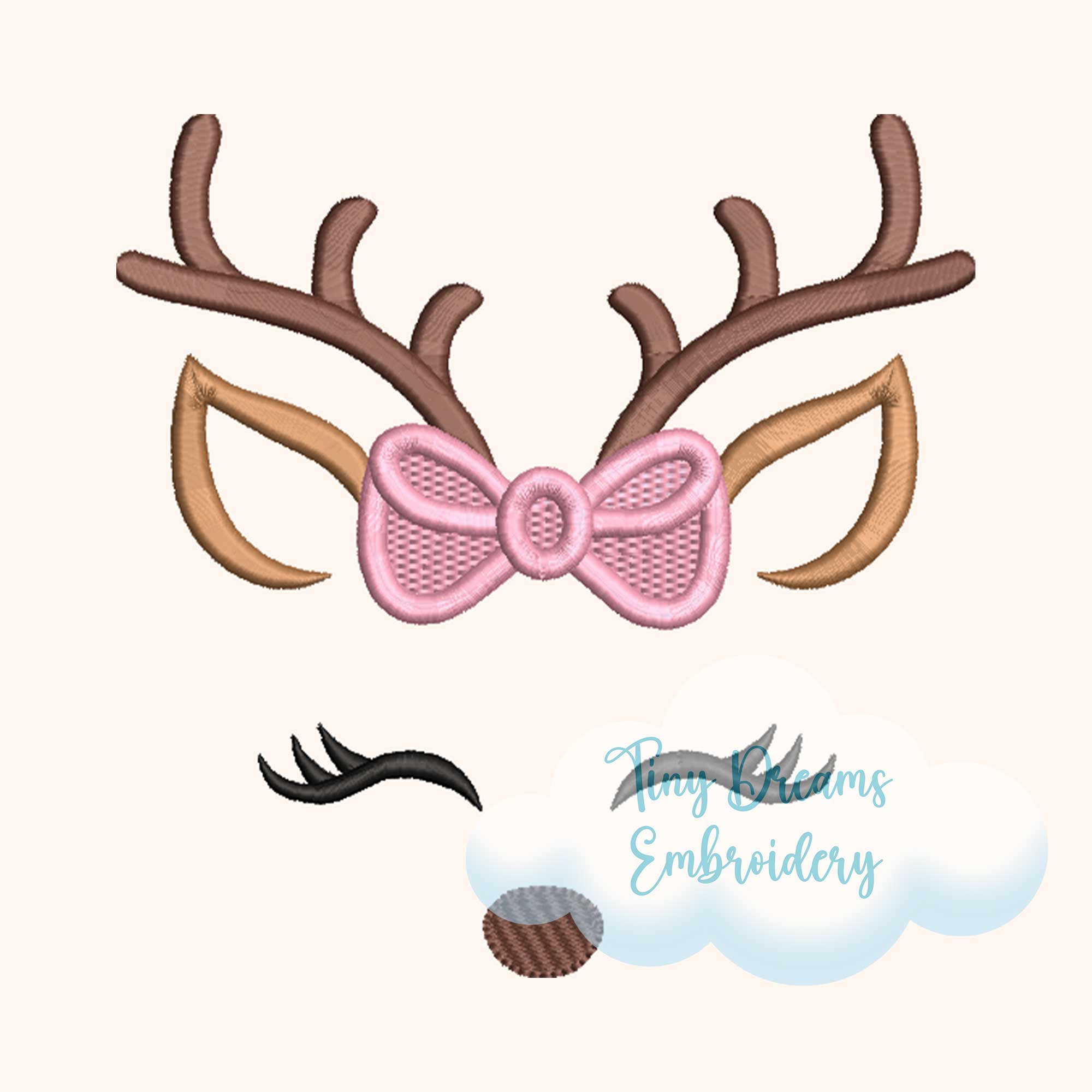 Christmas Reindeer Bow Machine Embroidery Design, Baby Girl Coquette (Digital Download)