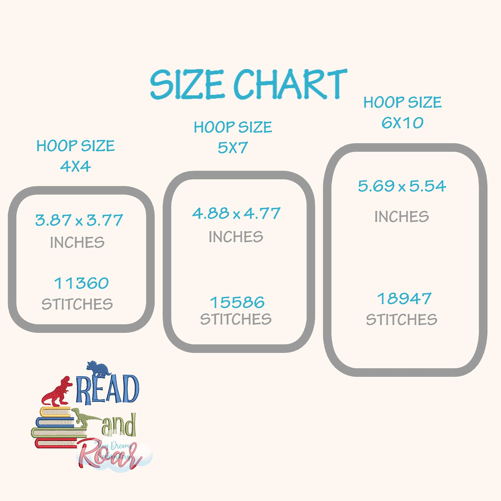 Read and Roar Machine Embroidery Design: Reading Pillow Dinosaur Books (Digital Download)