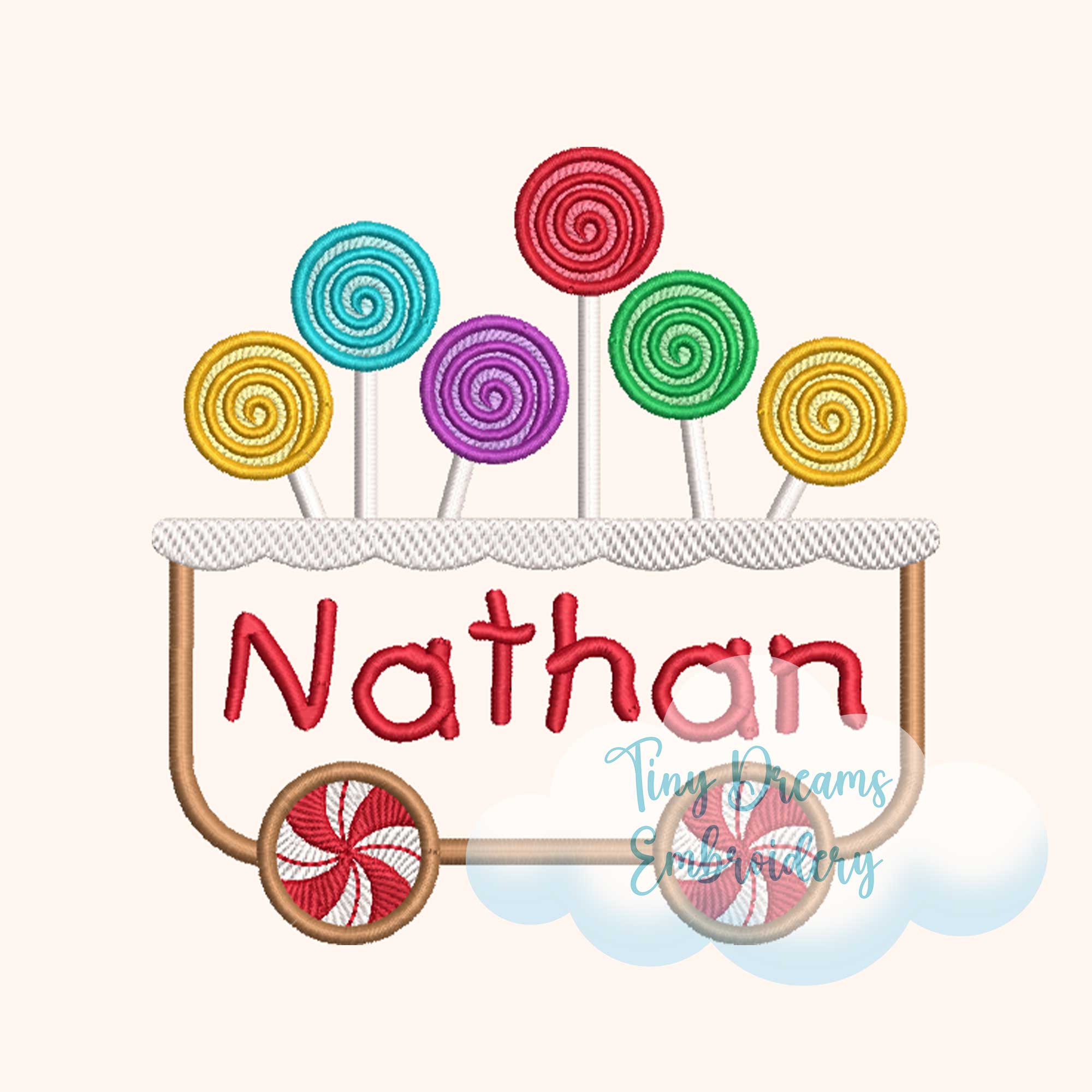 Christmas Cookie Wagon Lollipops Peppermint Candy Monogram Applique Embroidery Design, Custom Name (Digital Download)
